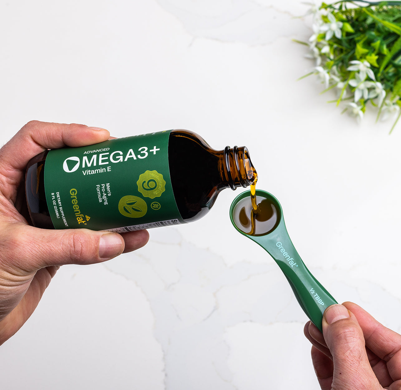 Greenfat is made with minimally-processed plants, providing five Essentially Fatty Acid chains, not just two or three like ordinary Omega-3 supplements. Your body has to get Essential Fats from food — and Greenfat is made from food.
